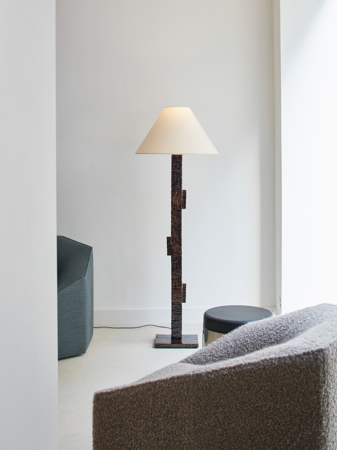 Portée par des matières brutes - comme l’acier, le chêne massif ou la pierre de lave – et des silhouettes à la fois architecturales et délicates, chacune de ces créations s’imposent naturellement dans l’espace. Entre fonctionnalité et douceur, elles donnent naissance à des pièces intemporelles qui composent un dialogue parfaitement maitrisé. ADRET agit comme le fil conducteur, le lien subtil entre ces individualités. De cet ensemble naît une sophistication discrète, presque instinctive : l’essence même d’une collection.