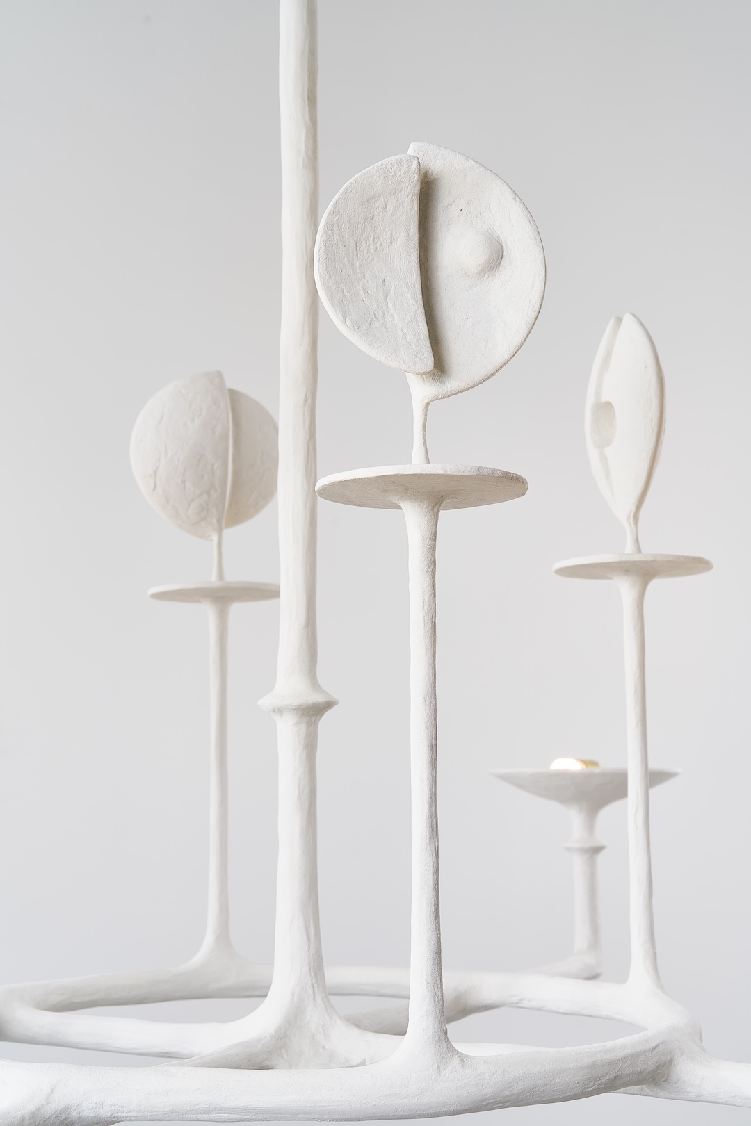 2025 marque un tournant pour Alexandre Logé. Ce créateur de pièces d'exception réalisées en ses ateliers, dans la tradition des arts décoratifs français, mais dynamisées d’une approche sculpturale toute personnelle, décline désormais sa production à travers deux collections distinctes. D’un côté Lefko, une ligne de luminaires en plâtre immaculé. De l’autre, Cosmos, un ensemble de mobilier et luminaires alliant haute technologie et artisanat d’art. Deux univers distincts, deux labels.